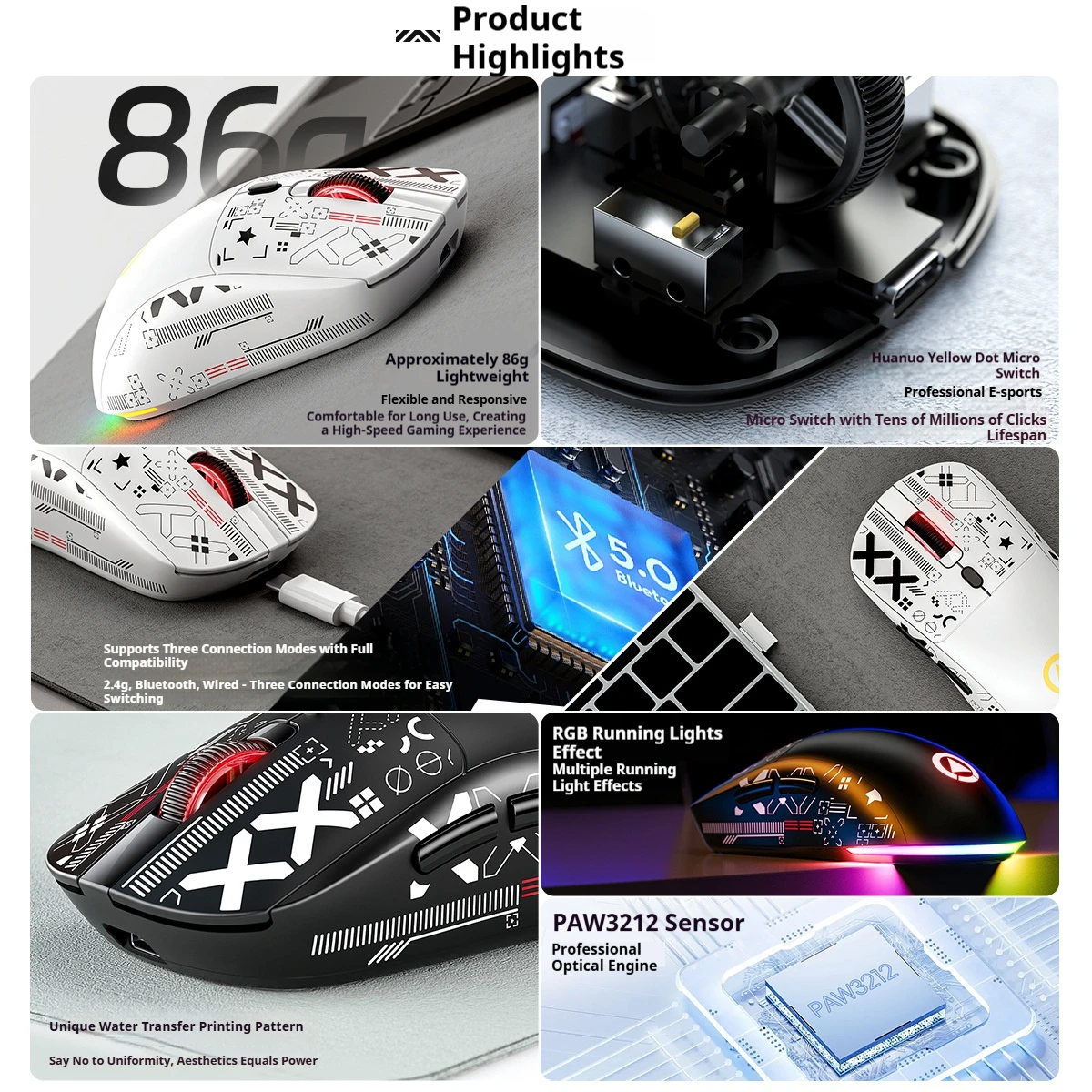 • Tri-mode Connection: Wired/2.4G/Bluetooth Mouse