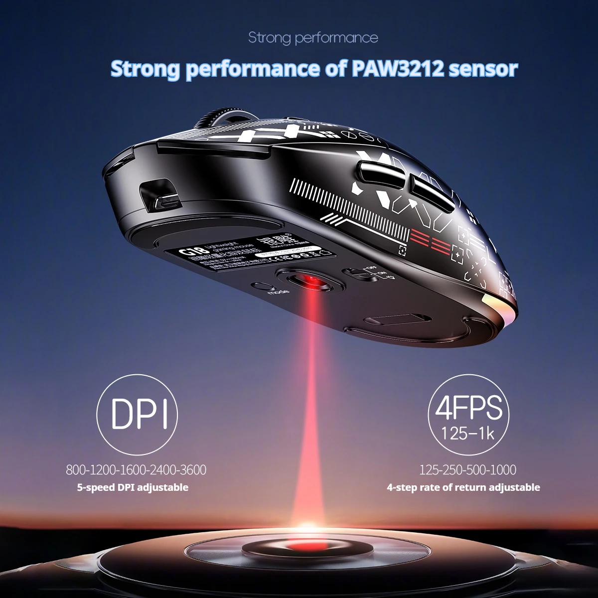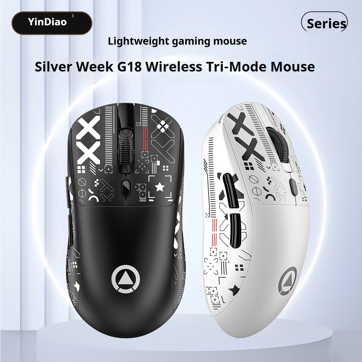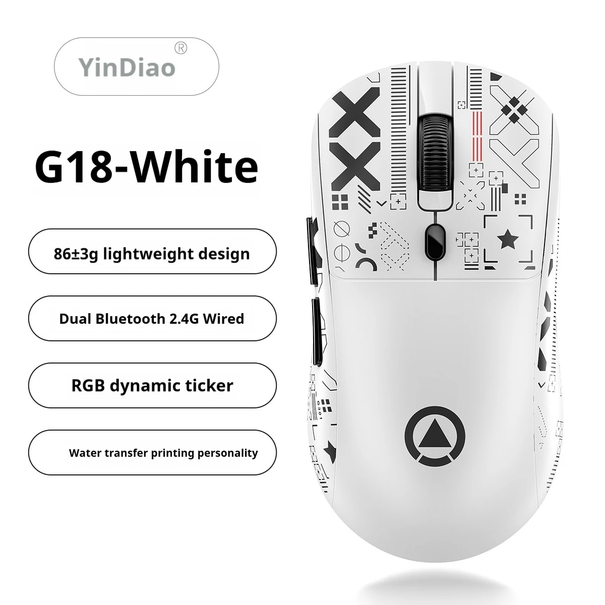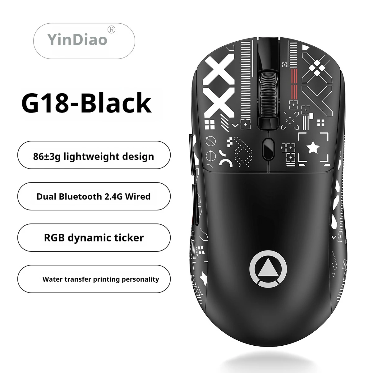 YINDIAO G18 Gaming Mouse Wireless 3-Mode Bluetooth5.0/2.4G/Type-c Wired Lightweight PAW3212 RGB 400mAh Ergonomics with Stickers